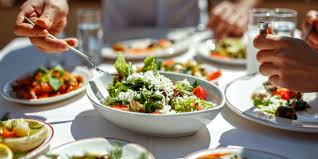 - pranzo: poca pasta condita a piacimento, oppure minestrone di verdure e cereali, o ancora carne bianca con contorno di verdure crude o al vapore, o ancora riso coi piselli o altro legume